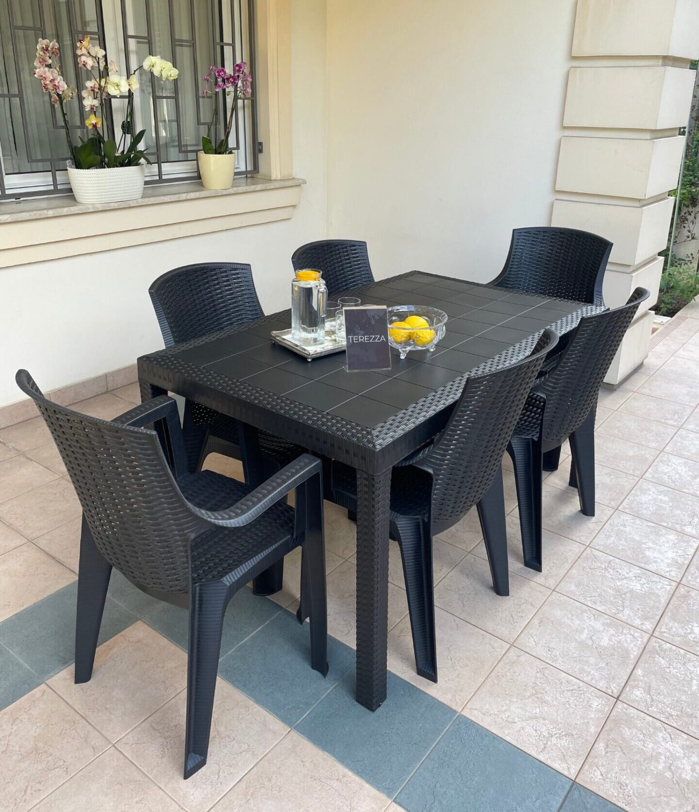 Baštenska garnitura – Duži sto + 6 Amelia stolica